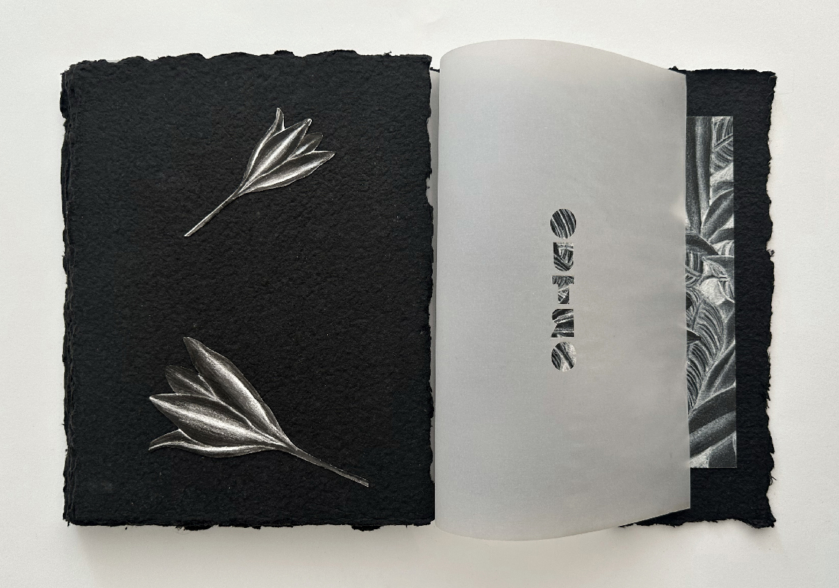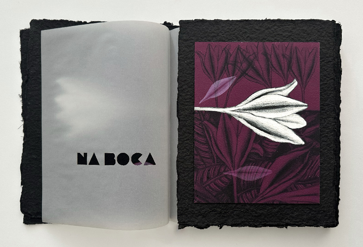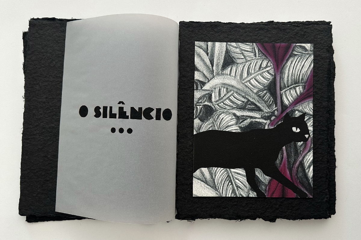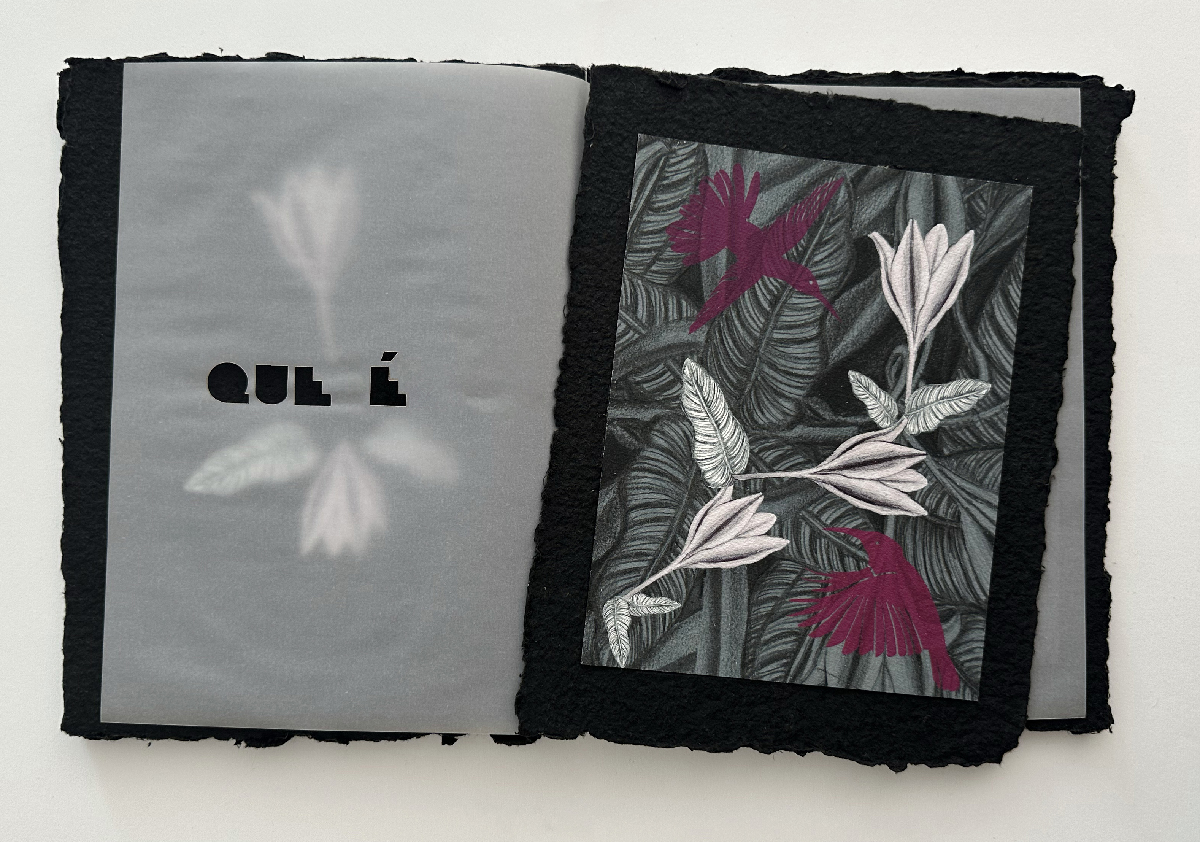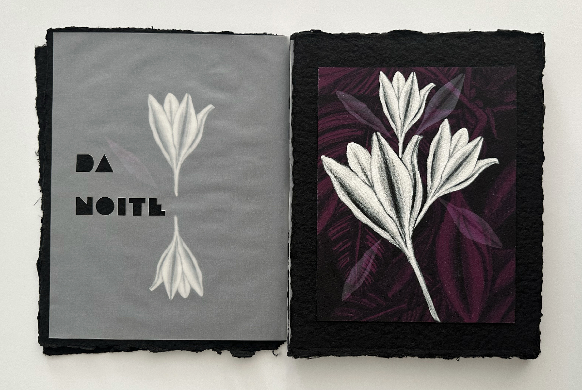 Livro de Artista Noturnal (2025): Técnica mista, impressão em papel Fine Arts e montagem em papel artesanal Formato: 20,5cm x 27cm (fechado) e 41cm x 27cm (aberto). Veja o PDF do trabalho completo nesse link.